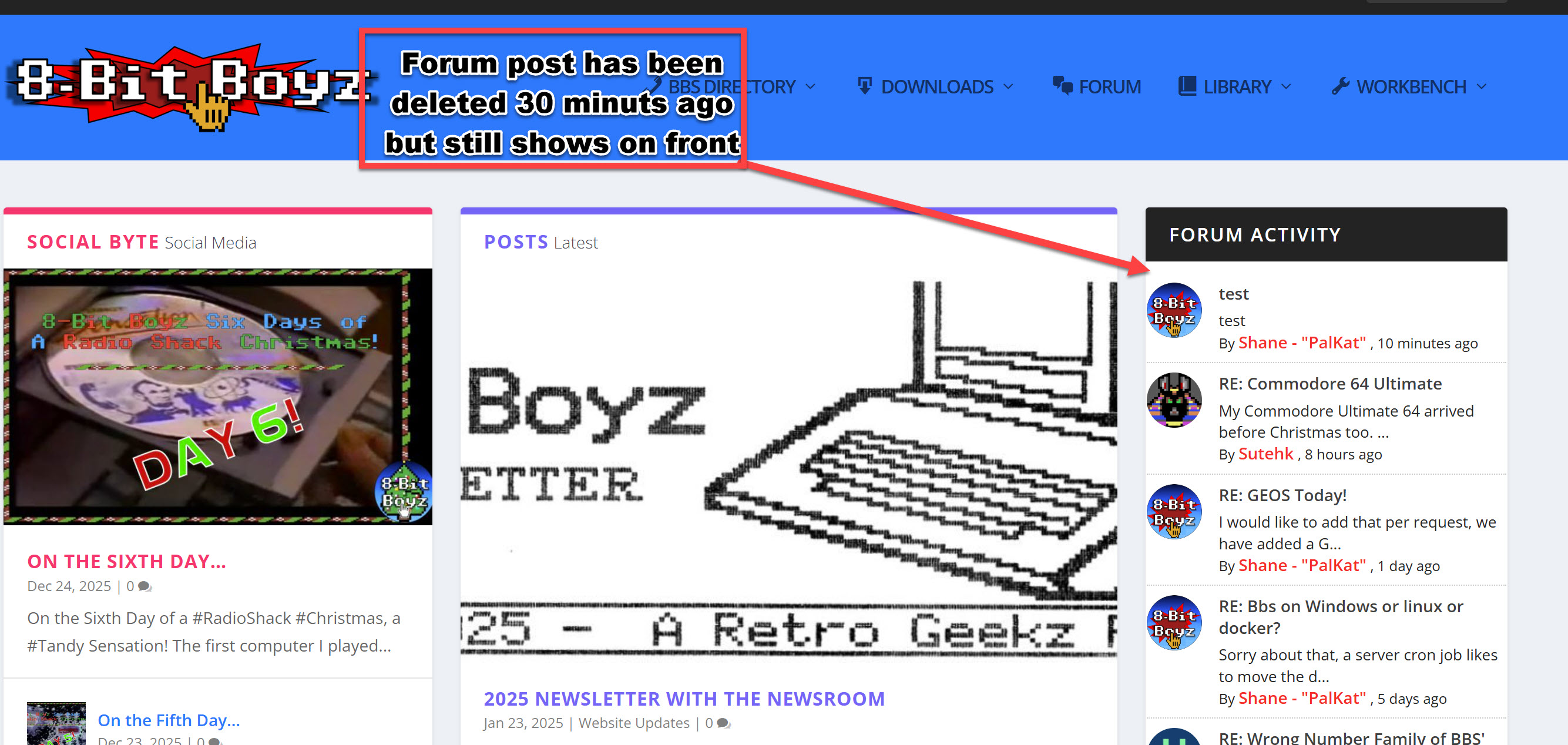 I find it is not updating. I created a "test" post in a forum, you can see in this picture inorder to get the new post to show in the widget I had to clear the cache for the homepage to get it to show, as you see in the attached photo. I have since deleted that "test" post and created another new one called "General Test" and that new one is not showing. It is still showing the now nonexsistant test post, again as you see in the photo.