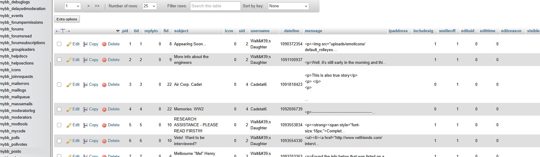 Hi: Yes, I was aware I had to change the url to the real one. 😉 Still no luck. As you can see, there is no column named body in either mybb_attachments, nor mybb_posts. Please see screenshot of the db table.