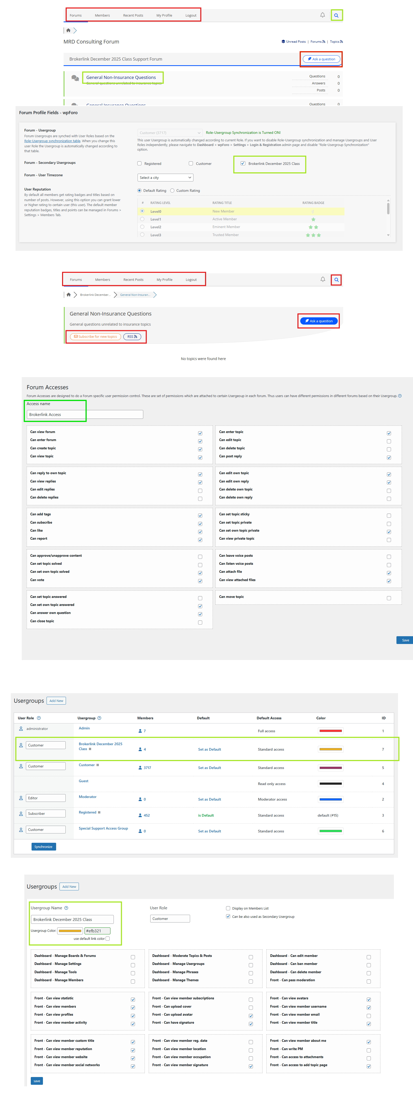 I have tried to set up the forums to restrict access to support forums to only a specific group, but they are unable to click any of the links I have highlighted in RED in the attached screenshots. They cannot post a Question.