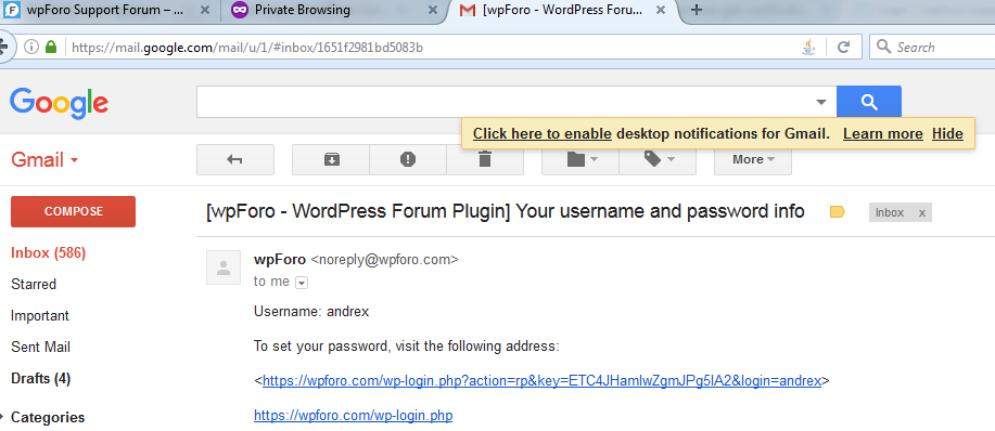 the first link when clicked will redirect me to wpforo reset page, of which if i input a new password or the password i used during registration, it will still work.