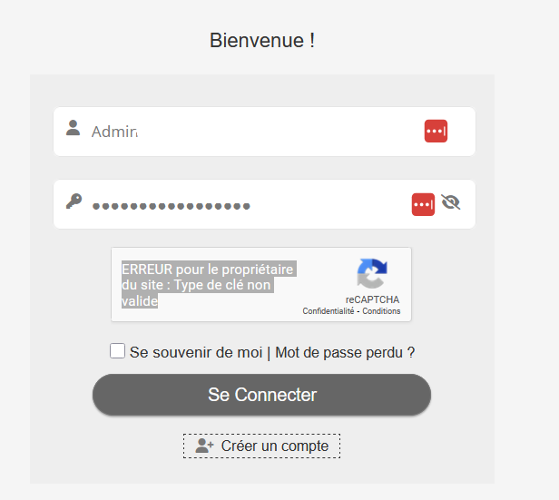 Hello Yesterday I set up the recaptcha on my site, everything went well, but today I cannot connect, I have this message: "ERROR for the site owner: Invalid key type"
