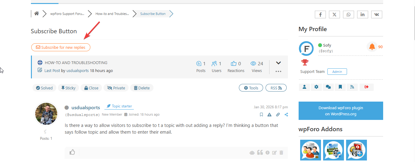 Is there a way to allow visitors to subscribe to t a topic with out adding a reply? I'm thinking a button that says follow topic and allow them to enter their email.