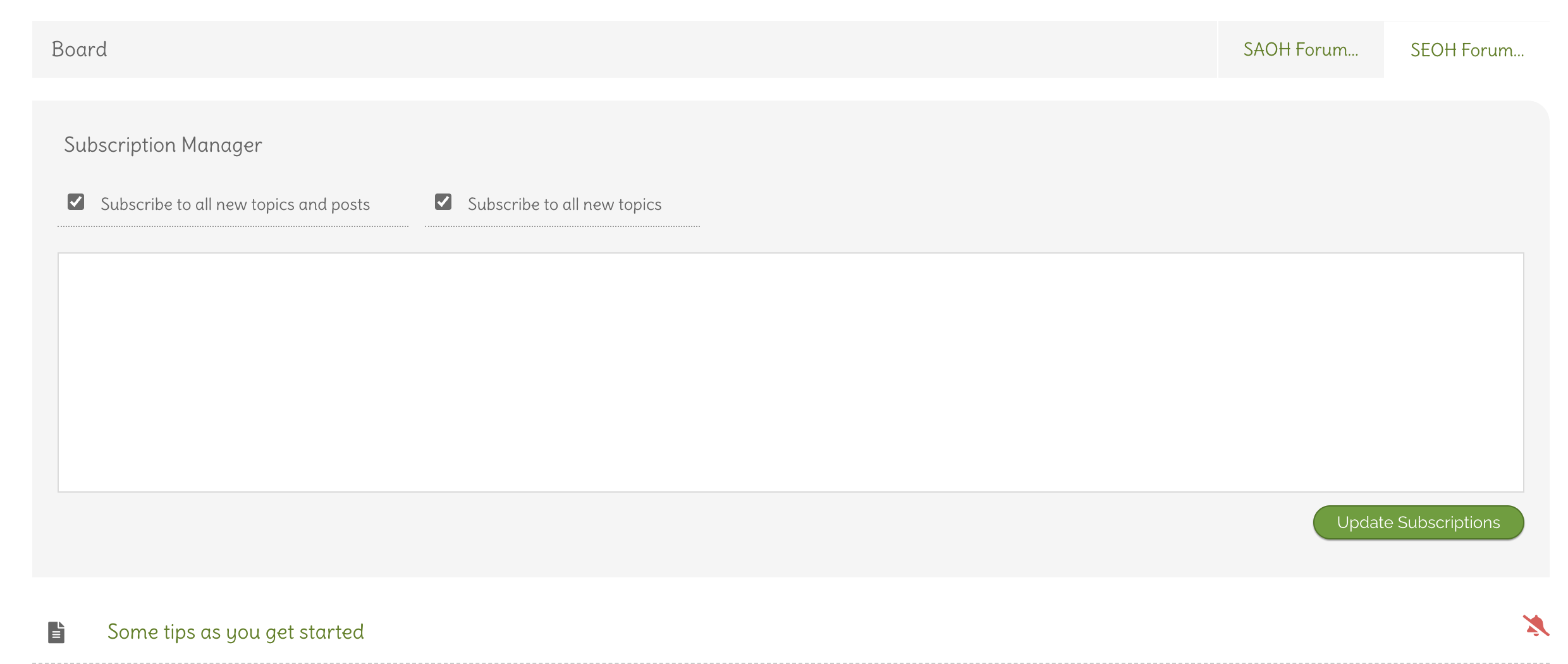 In the second forum board (SEOH Forum), the Subscription Manager has the following (also shown in attached photo):