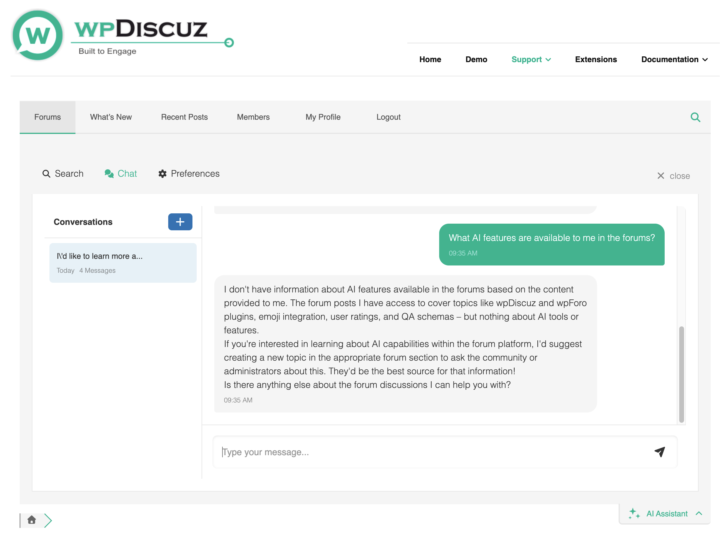I was just testing the AI Assistant on the wpdiscuz forums and noticed that it is not aware of its own capabilities for users. I asked it what AI features are available to me and it didn't know (see attached screenshot).