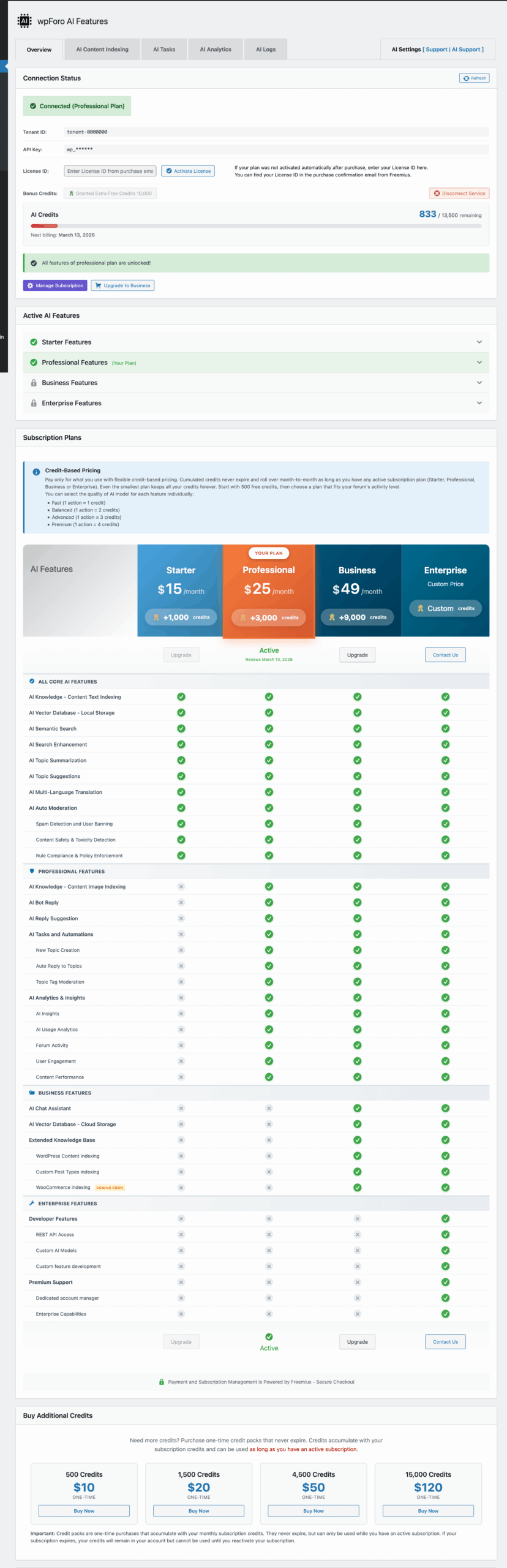 Regarding the G Vectors credits for the AI.... Can we buy them in bulk, outside of the subscription? I have over 5k threads on my forum, and would like the AI to scan though most of them to make sure it learns from the content on my site. Just the $25 a month on should be fine for me, but it wont give me enough credits. So can we buy more credits on top of the subscription, and would there be a discount for the first time we buy for big forums πΒ