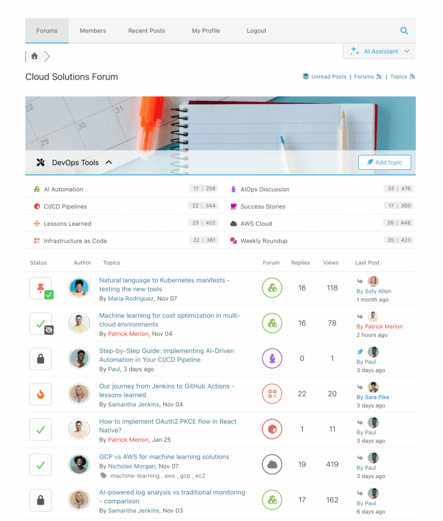 Threaded forum layout brings totally different forum experience. This is a new generation of forums and communities. You can use this layout for any kind of discussions, especially for support forums, support tickets, product reviewing discussions and thread oriented forums (small number of categories and forums, even just one forum). Below you can find more about main features of this forum layout.